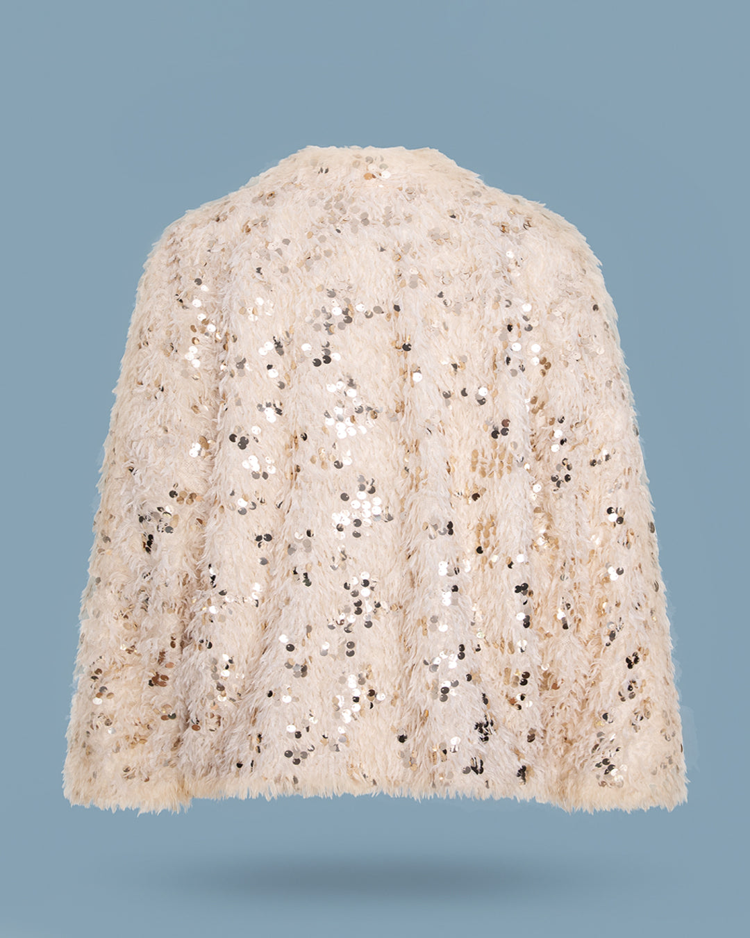 Un blazer statement, cu textură buclată și inserții discrete de paiete care captează lumina în cel mai subtil mod. Designul oversize îi oferă lejeritate și un aer nonșalant, perfect pentru ținutele elegante sau edgy.
